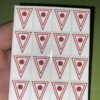 Buyer will receive 16 precut drop target stickers. These targets are made from high quality vinyl material and are made to fit standard sized pinball machine round targets that are approximate 3/4″ wide x 1” tall in size.